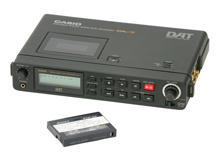 1978 The first EIAJ standard for the use of 14-bit PCM adaptors with VCR decks is embodied in Sonys PCM-1 consumer VCR adaptor. First digital recordings were saved on magnetic tapes and were demonstrated to the public in late 60s Japan. A part of a magnetic strip onto which sound can be recorded with several tracks on one magnetic strip.